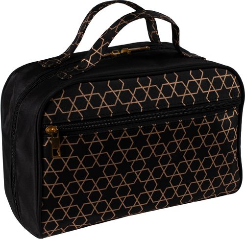 Średniego rozmiaru kuferek z serii Arabesque. Wygodny w pakowaniu i czyszczeniu. Powstały z wysokiej jakości materiału. Zamek błyskawiczny otwiera się w sposób pozwalający dokładnie zobaczyć zawartość kuferka. Pięć wewnętrznych kieszeni dodatkowych gwarantuje perfekcyjną organizację. Górna rączka zapewnia doskonałą mobilność.