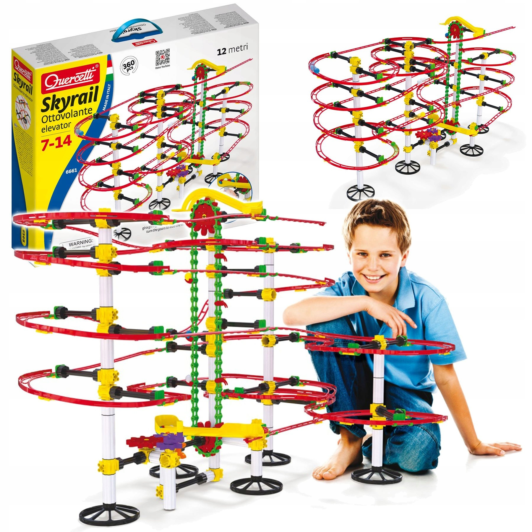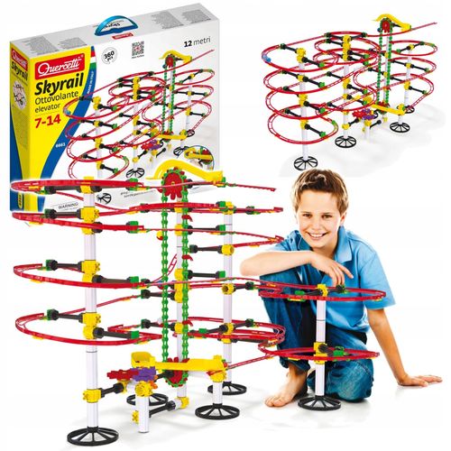 Tor kulkowy Skyrail Ottovolante Elevator QUARCETTI to wspaniała zabawa, która przenosi dzieci w świat niezwykłych konstrukcji i kreatywności! Ten wyjątkowy zestaw składa się z 360 giętkich i niełamliwych części, takich jak tory, cięgna, kołowrotki, łączniki oraz kulki, które można łączyć w nieograniczony sposób. Zestaw pozwala budować różnorodne tory kulkowe, które dostarczą godziny emocjonującej zabawy!