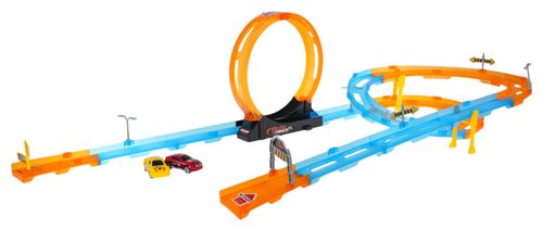 | Duży, ekstremalny tor wyścigowy z ostrymi zakrętami, pętlami i dwoma autkami w zestawie, to propozycja dla dzieci od 3-go roku życia. Zestaw składa się z 30 elementów do samodzielnego montażu. Na torze znajdują się odcinki proste, ostre zakręty z barierkami zabezpieczającymi przed wypadaniem pojazdu z trasy, dwa poziomy, a także pętla 360 stopni. Pojazdy znajdujące się w zestawie posiadają napęd pull back. |