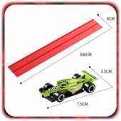 Ten wyjątkowy elastyczny tor wyścigowy o długości 3,9 metra pozwala na tworzenie nieograniczonych konfiguracji tras. Dzięki elastycznemu materiałowi wysokiej jakości, dzieci mogą projektować pętle, zakręty i zjazdy według własnej wyobraźni, co sprawia, że każda zabawa jest inna i pełna niespodzianek.