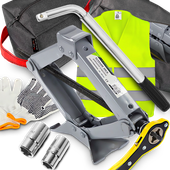 | PODNOŚNIK TRAPEZOWY 1,5T | KLUCZ TELESKOPOWY DO KÓŁ | NASADKI 17/19/21 | RĘKAWICE | TORBA ORGANIZER |