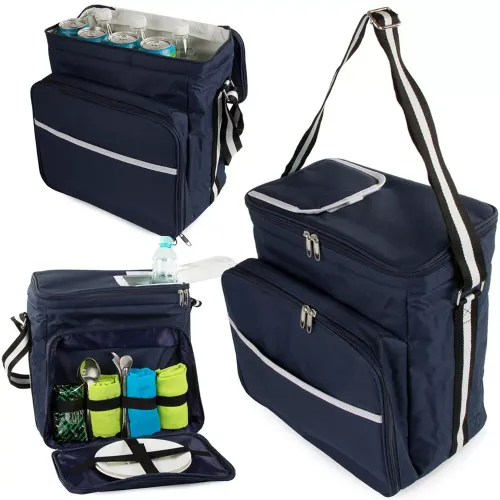 Miejsce na talerze i sztućce: Wnętrze torby zostało zaprojektowane z myślą o praktyczności. Posiada ona elastyczne paski, które pomieszczą talerze, sztućce, kieliszki oraz inne akcesoria piknikowe. Nie musisz się martwić o zapakowanie wszystkiego osobno.