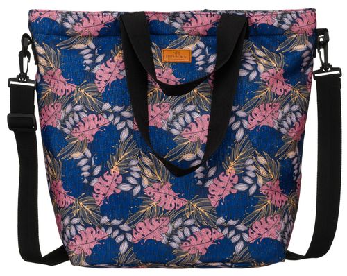 ✅ Tropikalny motyw na głębokim, niebieskim tle nadaje torbie unikalnego charakteru, tworząc doskonały dodatek do casualowych stylizacji.