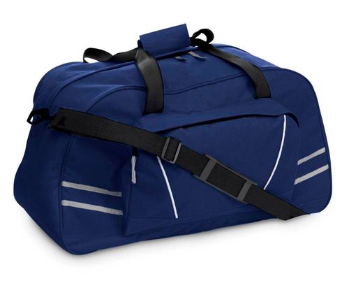 Torba sportowa, podróżna z dużą kieszenią przednią i odblaskowymi paskami, regulowany pasek na ramię