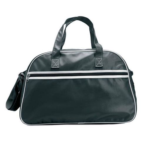 Torba sportowa „vintage" z matowego PVC z białą lamówką i przeszyciem.