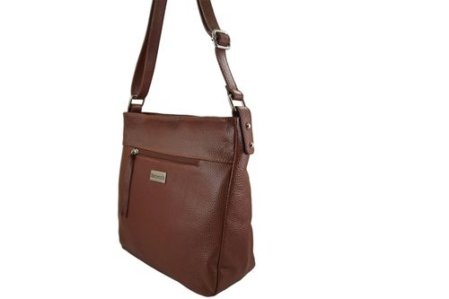 Torebka codzienna skórzana damska w kolorze brązowym jest wykonana ze skóry naturalnej licowej. W najnowszej kolekcji galanterii skórzanej proponujemy wygodną i pojemną torebkę, którą zaprojektowano tak, aby zmieściła to co niezbędne do pracy lub na krótki weekendowy wyjazd. Poręczne kieszenie doskonale utrzymają porządek i z łatwością znajdziesz to czego szukasz - wszystko będzie na swoim miejscu. Praktyczna torebka codzienna skórzana damska na wygodnej długości regulowanym pasku to propozycja dla Pań ceniących gustowne dodatki swobodnej garderoby na każdy dzień, zwracających uwagę na wygodę oraz wyróżnienie codziennego outfitu. Gwarantujemy zadowolenie z zakupionych produktów - najnowsze trendy, stonowane kolory oraz subtelne ozdoby przemawiają za wyborem torebki oraz portfela w naszym sklepie.