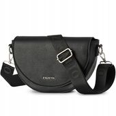✔️Nowoczesny półokrągły kształt i szeroki pasek z tłoczonym logo, zapewniające unikalny styl i wygodę noszenia na ramię lub crossbody.