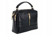 Ta wyjątkowa torebka damska kuferek lakierowany model wizytowy w czarnym kolorze wyróżnia się unikalnym, nowatorskim designem, który idealnie pasuje zarówno do młodej dziewczyny, jak i dojrzałej kobiety. Mimo kompaktowych rozmiarów, oferuje zaskakującą pojemność dzięki dwóm niezależnym komorom głównym zamykanych na zamek błyskawiczny, co pozwala na wygodną organizację codziennych niezbędników z niezawodną precyzją.