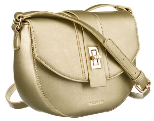 Mała torebka typu listonoszka zamykana stylową klapką na zamek obrotowy. Tuż pod nią znajduje się jeszcze zamek błyskawiczny.