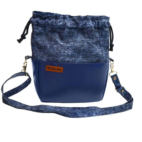Dolna część torebki wykonana jest z gładkiej skóry ekologicznej w odcieniu niebieskiego, natomiast górna część imituje klasyczny dżins, co nadaje całości nowoczesnego charakteru. Całość uzupełnia troczek jako zamknięcie, który gwarantuje szybki dostęp do zawartości.
