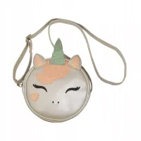 Torebka w kolorze jasno srebrnym, z aplikacją jednorożca. Główna komora zamykana na zamek. Pasek z możliwością realizacji.