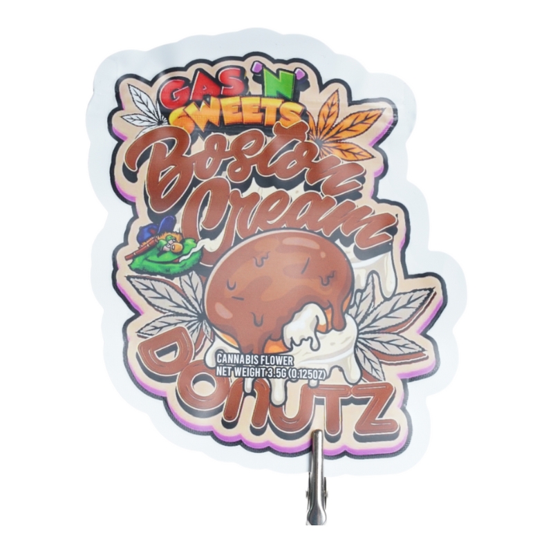 Grafika na matowym opakowaniu przedstawia bostońskiego pączka otoczonego liśćmi marihuany. Całość utrzymana jest w kremowo-brązowej kolorystyce.