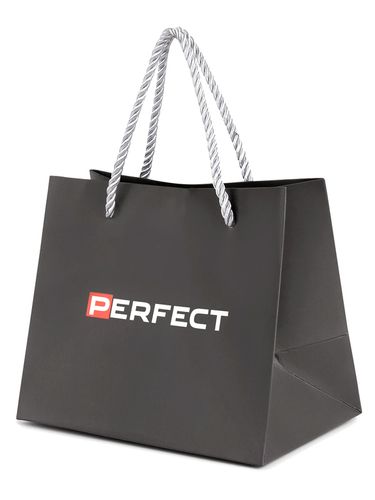 Torebka prezentowa Perfect w kolorze szarym, wykonana z utwardzanego papieru. Logo producenta na torebce w kolorze białym.