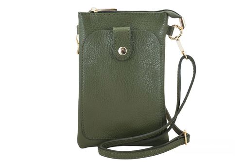 Torebka skórzana / etui na telefon - Zielona to niezastąpiony element garderoby każdej nowoczesnej kobiety. Wykonana z wysokiej jakości naturalnej skóry licowej, łączy w sobie styl, funkcjonalność i trwałość, co czyni ją idealnym wyborem na co dzień. Piękny zielony kolor torebki doda świeżości każdej stylizacji, od casualowych po bardziej eleganckie, sprawiając, że z łatwością dopasujesz ją do każdej okazji.