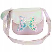Wykonana z niezwykle efektownego opalizującego materiału, torebka zachwyca swoim pięknem. Klapa ozdobiona błyszczącymi cekinami i motyl ze skrzydełkami pokrytymi drobinkami tworzą prawdziwą ucztę dla oczu. Dodatkowo, słodki brelok-puszek stanowi urocze dopełnienie całości.