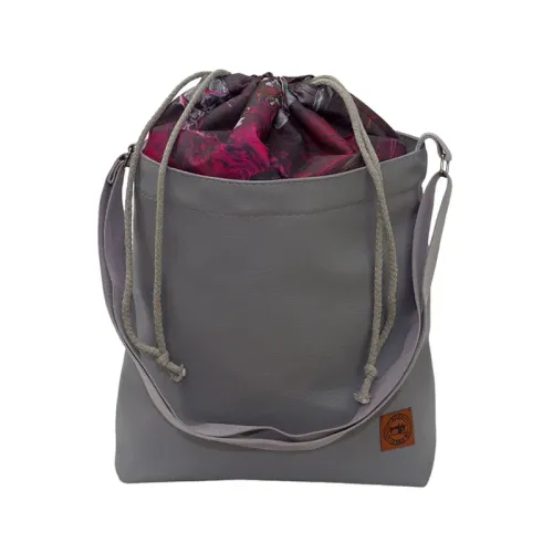 Torba posiada zapięcie na sznurek, które nie tylko dobrze wygląda, ale też zapewnia bezpieczeństwo przechowywanych przedmiotów. Srebrne okucia dodają elegancji, a wysokiej jakości poliester i skóra ekologiczna gwarantują trwałość i odporność na codzienne użytkowanie. Całość została ręcznie wykonana z dbałością o każdy detal, co czyni każdą sztukę unikalną.
