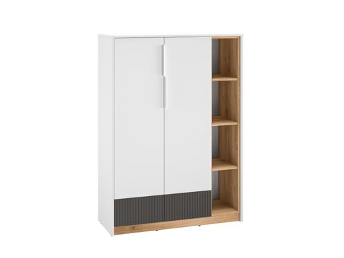Kolekcja mebli "TORINO" to meble młodzieżowe o nowoczesnym designe. Korpusy mebli wykonane z płyty laminowanej wysokiej jakości odpornej na zarysowania, wilgoć i wysoką temperaturę, wykończone obrzeżem ABS odpornym na uderzenia i wilgoć. Fronty wykonane z płyty białej w połączeniu z MDF grafitowym matowym z frezowaniem. Kolekcja mebli obejmuje róznorodne rodzaje mebli. Meble posiadają zawiasy z cichym domykiem. Szuflady z pełnym wysuwem oraz zwiększoną ładownością dzięki wzmocnieniu dna. Meble z kolekcji TORINO to prostota, minimalizm i funkcjonalność.