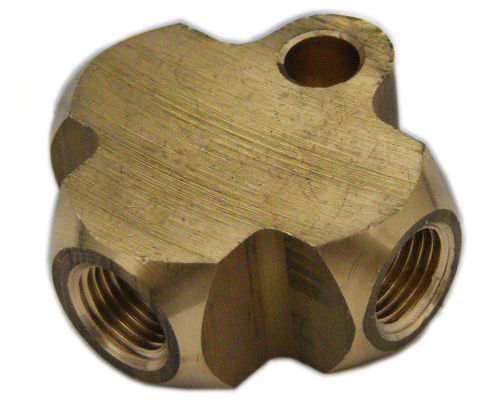 Trójnik przewodów hamulcowych z gwintami wewnętrznymi.