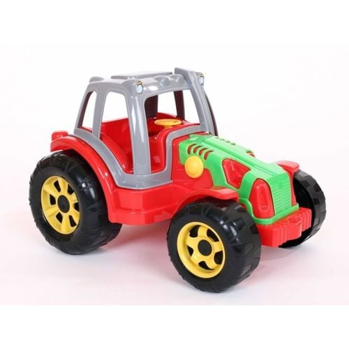 Masywny traktor z kierownicą oraz światłami umieszczonymi na kabinie. Jest to podstawowa wersja traktora.