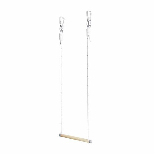 Trapez możemy wykorzystać jako huśtawkę albo drążek do podciągania. To wspaniałe urządzenie do ćwiczeń gimnastycznych. Taki akcesoria pozwalają rozwijać układ równowagi. Sprzęt jest montowany na klipsach-prowadnicach (umieszczonych na drabince). One zapobiegają ich przesuwaniu się podczas zabawy. Akcesoria gimnastyczne są przygotowane do zawieszenia na drabince do ćwiczeń po utworzeniu pętli przy pomocy załączonego metalowego elementu.