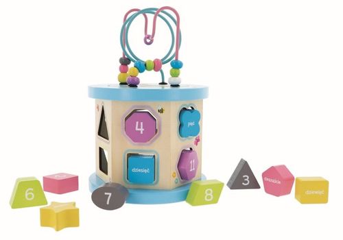 Produkt jest przeznaczony do użytkowania pod nadzorem dorosłych, co zapewnia pełne bezpieczeństwo podczas zabawy. Dodatkowo, różnorodne elementy sorterów pozwalają na tworzenie własnych gier i zabaw, a jego kompaktowe wymiary 21 cm szerokości oraz wysokość 13 cm sprawiają, że łatwo można go zabrać w podróż czy do innego pomieszczenia. To nie tylko zabawka, ale także narzędzie edukacyjne wspierające rozwój Twojego dziecka w przyjemny i angażujący sposób.
