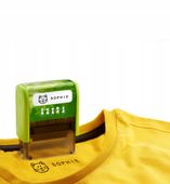 Pieczątka jest wyposażona w specjalistyczny tusz do znakowania tkanin, który nie wysycha i nie wymaga odcinania dostępu powietrza. Po wygrawerowaniu płytki tekstowej jest od razu gotowa do użycia, co czyni ją niezwykle wygodną i praktyczną.