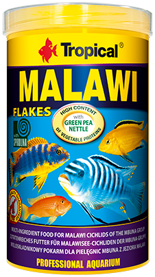 Malawi to wieloskładnikowy pokarm dla ryb w formie płatków z dużym udziałem składników roślinnych (szpinak, pokrzywa, spirulina, zarodki pszenne itp.). Linia Premium to gotowe pokarmy z wieloma atrakcyjnymi dodatkami, które zapewniają rybom m.in. doskonałą kondycję, piękne kolory i większą odporność na choroby. Linia Premium obejmuje zarówno produkty uniwersalne, jak i specjalistyczne, przeznaczone do żywienia ryb o szczególnych wymaganiach pokarmowych.