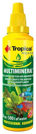Zarówno ryby, jak i rośliny wodne stale pobierają z wody mikroelementy niezbędne w wielu istotnych procesach życiowych, powodując systematyczny spadek stężenia tych substancji w wodzie. Powstające w ten sposób niedobory pierwiastków są przyczyną wielu schorzeń oraz często nieodwracalnych nieprawidłowości w rozwoju ryb. W celu przeciwdziałania niedoborom mikroelementów zalecamy stosowanie preparatu Multimineral przy każdej podmianie wody oraz dodatkowo w okresach zwiększonego zapotrzebowania na te pierwiastki, np. podczas rekonwalescencji i przygotowań do tarła, po stosowaniu węgla aktywnego w akwarium itp.