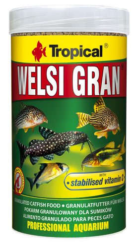Welsi Gran to wieloskładnikowy pokarm do codziennego karmienia wszystkożernych i mięsożernych ryb, które pobierają pokarm z powierzchni dna akwarium, np. kirysków, piskorków, sumów, glonojadów. Linia Premium to gotowe pokarmy z wieloma atrakcyjnymi dodatkami, które zapewniają rybom m.in. doskonałą kondycję, piękne kolory i większą odporność na choroby. Linia Premium obejmuje zarówno produkty uniwersalne, jak i specjalistyczne, przeznaczone do żywienia ryb o szczególnych wymaganiach pokarmowych.