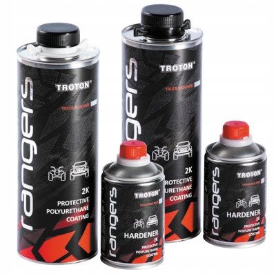 Troton Rangers to wysokiej jakości, dwuskładnikowy środek ochronny o poliuretanowej formule. Tworzy trwałą, strukturalną powłokę, która skutecznie zabezpiecza karoserię przed wpływem czynników chemicznych (olej, benzyna, woda, sól) i mechanicznych (zadrapania, plamy), a także chroni przed działaniem warunków atmosferycznych (filtry UV) i korozją.