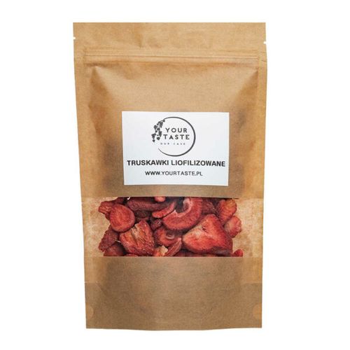 Letnie owoce zamknięte w opakowaniu by cieszyć się ich smakiem cały rok! Truskawki liofilizowane pochodzą od Polskiego, lokalnego producenta, który zajmuje się zarówno ich uprawą jak i procesem liofilizacji. Wspomniany proces liofilizacji polega na całkowitym odwodnieniu produktów, ich smak zostaje mocno wyostrzony nie zmieniając przy tym kształtu owoców. Znajdzie się dla nich szereg zastosowań w kuchni, od owsianek i koktajli, przez wypieki do dań wytrawnych. Niczyjej uwadze nie umknie również ich intensywny kolor, z tego względu idealnie sprawdzą się w roli dekoracji różnych potraw. Truskawki liofilizowane bogate są w witaminy z grupy B oraz witaminy: C, A, E, PP, kwas foliowy a także mikroelementy takie jak: żelazo, wapń, fosfor, magnez i mangan