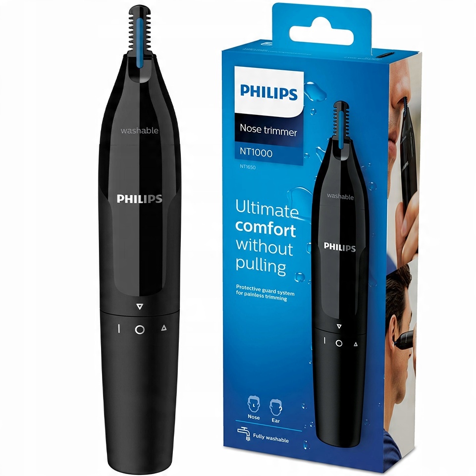 Trymer do nosa Philips z serii 1000 delikatnie usuwa niechciane włoski w nosie i uszach. Nowa technologia PrecisionTrim i system Protective Guard zapewniają wygodne i skuteczne przycinanie bez ciągnięcia i wyrywania.