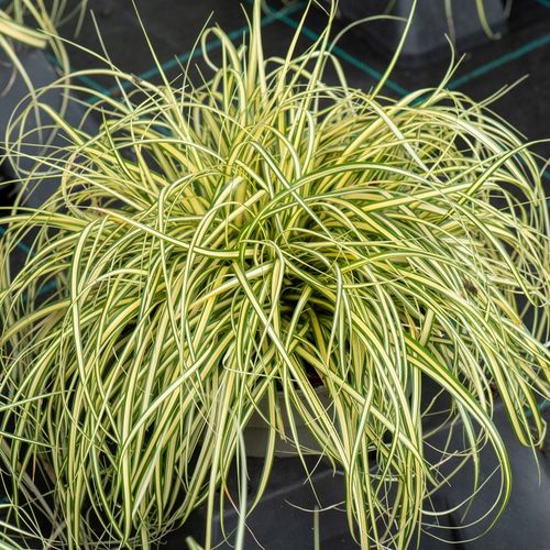 Zimotrwała bylina z rodziny turzycowatych (Cyperaceae Juss.). Jej liście są mocne, sztywne, dość szerokie. Charakteryzuje się ciekawym wybarwieniem, liście są jaskrawo żółte z zielonym obrzeżem. Tworzy luźne kępy łukowato wygiętych liści. Tworzą kępy o wysokości ok. 0,3m. Latem na pędach pojawiają się zielonkawobrązowe kwiaty zebrane w kłosy. Jesienią wybarwiają się na czerwono-brązowy kolor. Ta niezmiernie ciekawa roślina jest zimozielona, więc zachowuje swój niebanalny kolor przez cały rok.