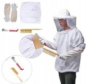 ✔️ Kompletny zestaw obejmujący kombinezon, rękawice, szczotkę i skrobak do profesjonalnej pracy z pszczołami.
