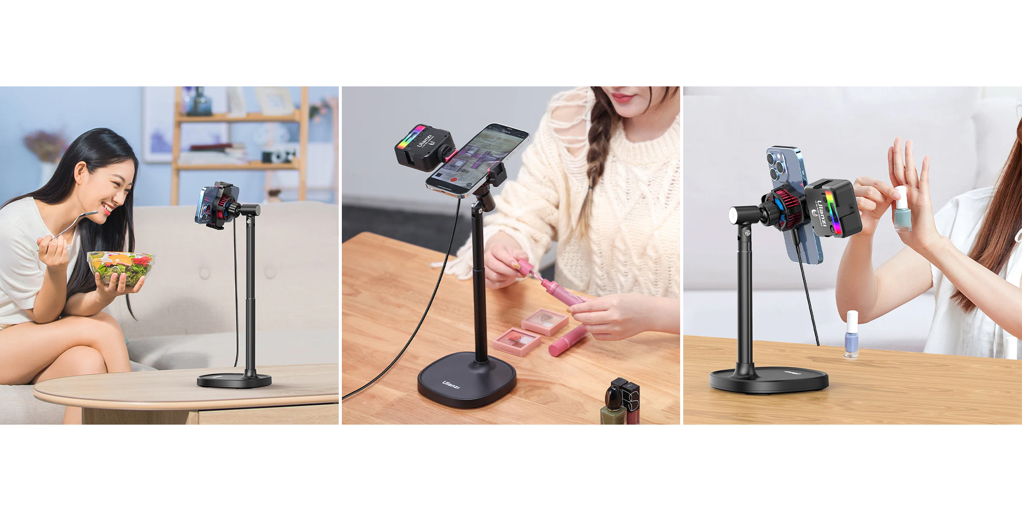 Uchwyt Ulanzi SK-06 pasuje do większości modeli smartfonów dzięki zastosowaniu regulowanego zacisku (od 65 do 89 mm). Dodatkowo głowica kulowa 360º umożliwia wielokierunkową regulację i dostosowanie kąta widzenia do własnych potrzeb. Solidny teleskopowy uchwyt oferuje wysokość od 185 do 305 mm, co sprawia, że urządzenie doskonale sprawdzi się zarówno w formie stojaka biurkowego, jak i uchwytu mobilnego.