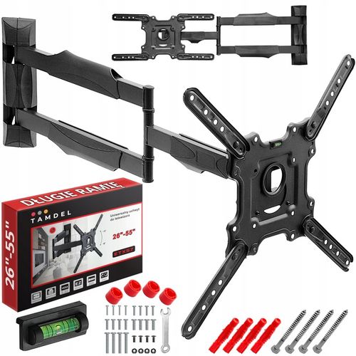 Ten solidny uchwyt do telewizora o ramieniu o długości 72 cm zapewnia pełną swobodę regulacji, pasując idealnie do modeli od 26 do 55 cali i większych o wadze do 35 kg. Wykonany z trwałego metalu malowanego proszkowo, gwarantuje stabilność i precyzyjne pozycjonowanie, co pozwala na optymalne dostosowanie kąta widzenia bez kompromisów w jakości obrazu.