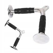 Uchwyt wyposażony jest w antypoślizgowe, gumowe rękojeści, zapewniające pewny i wygodny chwyt podczas najtrudniejszych serii. Jego kształt litery V umożliwia naturalne ułożenie ramion i precyzyjne zaangażowanie bicepsów oraz tricepsów.