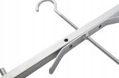 Z rozstawem bolców wynoszącym 44 cm i maksymalnym zasięgiem haka 33 cm, te uchwyty oferują wygodny i praktyczny sposób transportowania drabin na dachu samochodu. Ich solidna konstrukcja gwarantuje bezpieczne i stabilne zamocowanie.