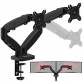 Ten wytrzymały i regulowany uchwyt na dwa monitory zapewnia komfort podczas pracy, nauki lub rozrywki. Dzięki sprężynie gazowej i wielopłaszczyznowej regulacji, z łatwością dostosujesz położenie ekranów do swoich potrzeb.