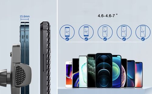 Dzięki ulepszonym zaczepom wentylacyjnym, uchwyt ten jest kompatybilny z 99% poziomych i pionowych otworów wentylacyjnych, co zapewnia maksymalną wszechstronność zastosowania w niemal każdym pojeździe.