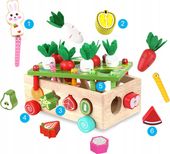Edukacyjny wózek ogrodnika łączy w sobie wielofunkcyjną zabawę z intensywnym rozwojem umysłowym. Dziecko poznaje świat poprzez sortowanie 12 kolorowych klocków-owoców, zbieranie 8 marchewek i łapanie 10 robaków przy użyciu magnetycznego królika. Każdy element został zaprojektowany tak, aby stymulować różne obszary rozwoju poznawczego.