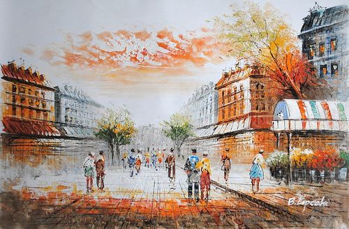 Ręcznie malowany obraz olejny na płótnie! Dostępny bez blejtramu. Sygnowany i werniksowany. Przedstawia uliczkę. Rozmiar 60x90cm. Obraz o oryginalnej prezencji i pięknych barwach!