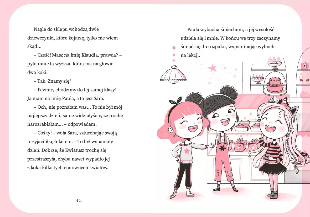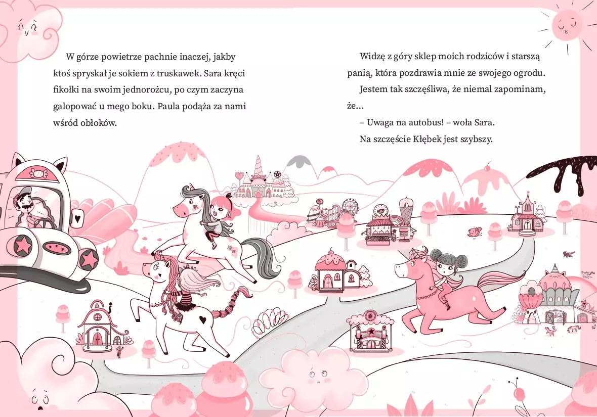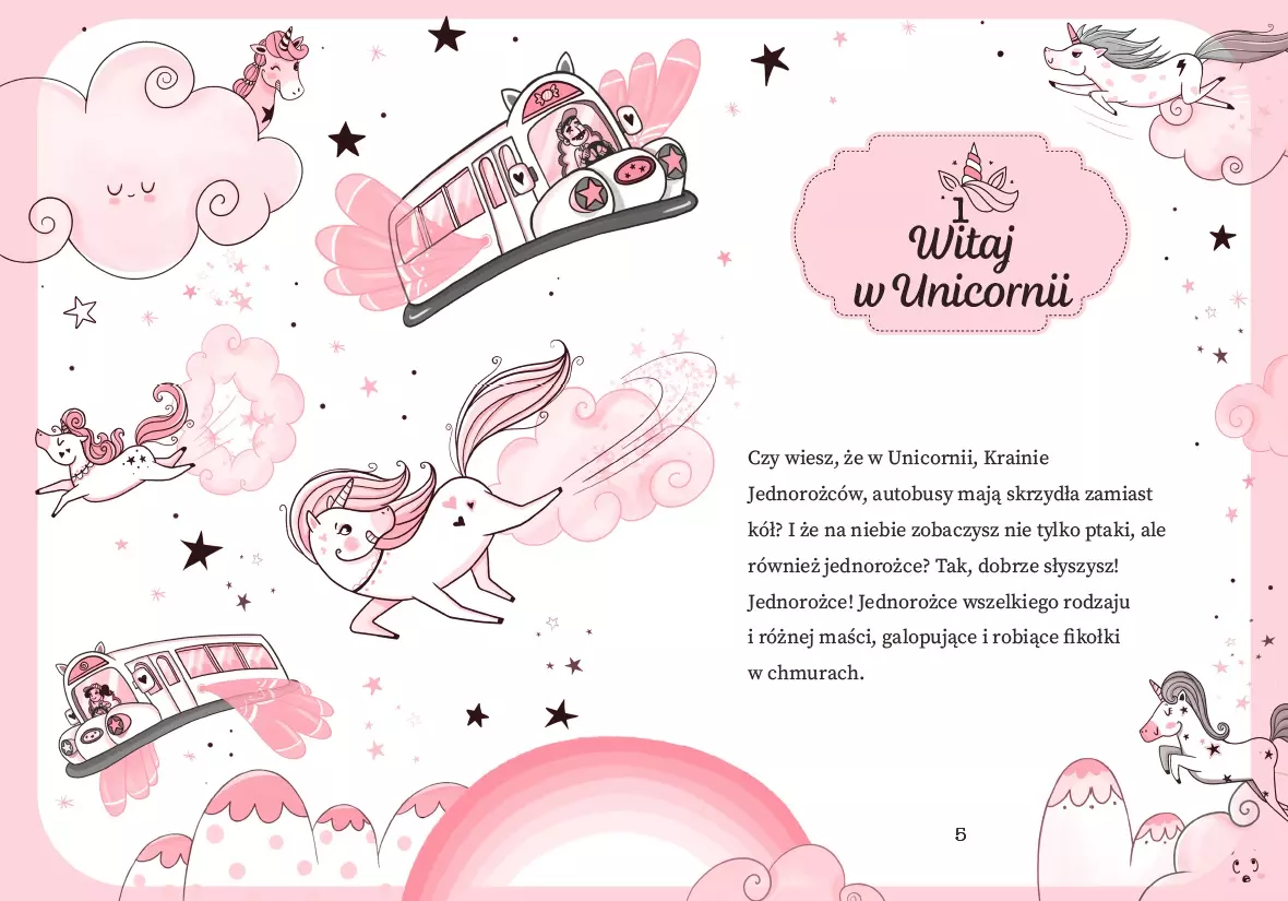 Wybierz się w podróż do Unicronii, Krainy Jednorożców, gdzie magia pozwoli ci unieść się w przestworza! Unicronia to miejsce, do którego Klaudia niedawno przeprowadziła się z rodzicami. To również najbardziej magiczne miejsce w całym wszechświecie. Wyobraź sobie, że w Unicornii, Krainie Jednorożców: autobusy mają skrzydła zamiast kół; jedzenie zmienia smak i kolor; kiedy spojrzysz w niebo, zobaczysz nie tylko ptaki, ale i jednorożce; zamiast lekcji matematyki, uczysz się eliksirów. Tak, Unicornia jest wspaniała… ale nie idealna! W szkole magii odbywają się sprawdziany jak wszędzie indziej. Klaudia musi jutro zaliczyć lot na jednorożcu. Czy uda jej się nauczyć latać w rekordowo krótkim czasie? „Unicornia” to nowa seria dla młodych czytelniczek i czytelników, którzy kochają jednorożce i marzą o lataniu wśród chmur. Sprawdź także kolejną książkę z serii „Unicornia” pt. Magiczne urodziny. Tytuł oryginalny: Unicornia 1. Un Lio con Brilli Brilli Ilustrator: Diana Vicedo Tłumacz: Katarzyna Górska