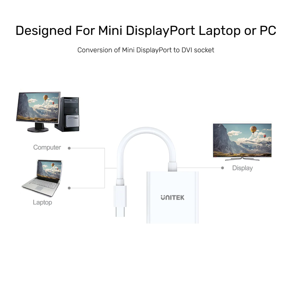 Konwerter sygnału Y-6326WH to oczywisty wybór, jeśli chcesz połączyć komputer lub dekoder z wyjściem mini DisplayPort (lub Thunderbolt 1/2) z wyświetlaczem (telewizorem, rzutnikiem) wyposażonym w starszy port Digital Visual Interface (DVI) i masz już odpowiednio długi przewód DVI.
