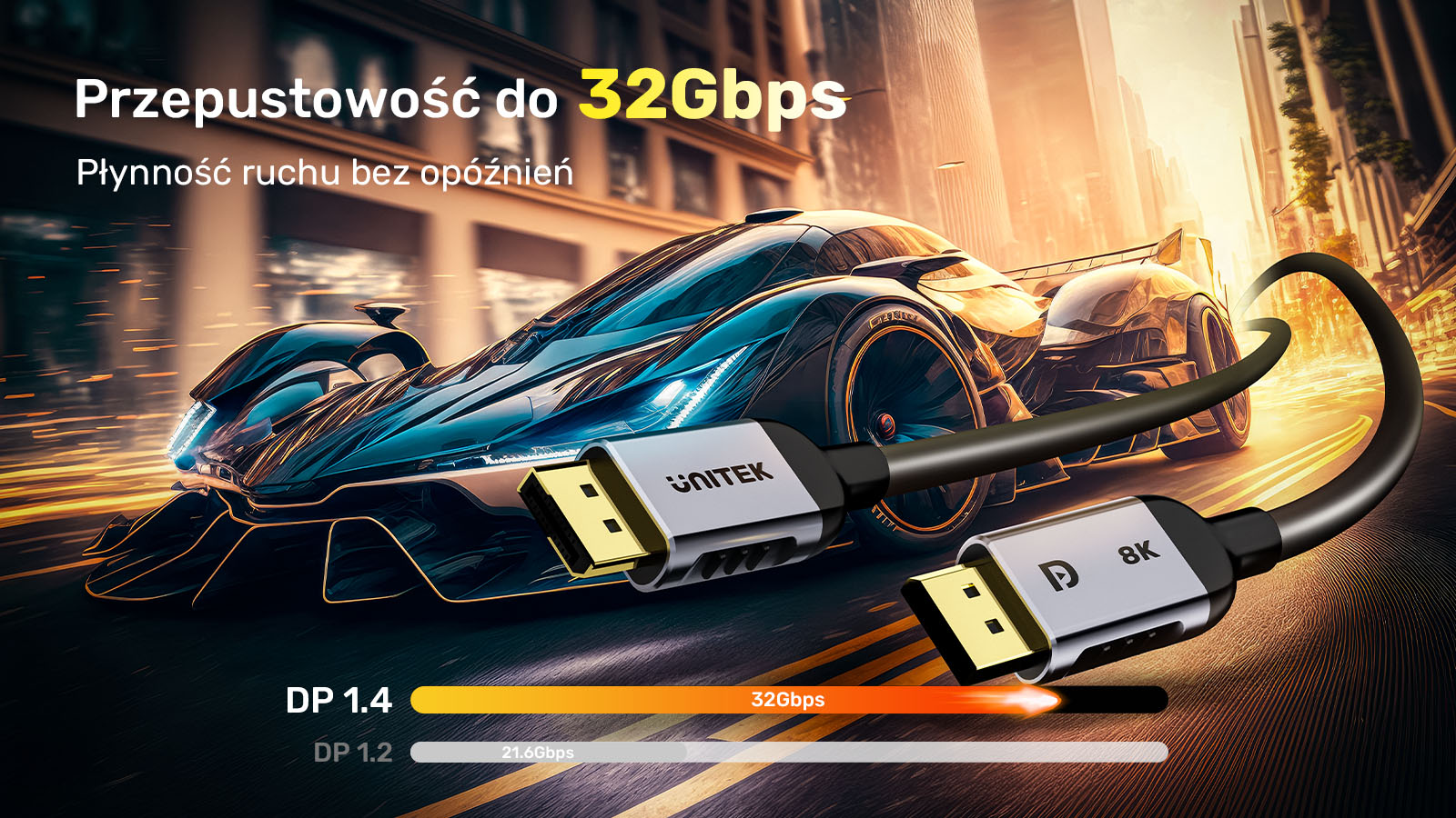 Obraz nienadążający za dźwiękiem, irytujące opóźnienia w trakcie streamowania, klatkowanie przy wysokich rozdzielczościach – każdy, kto kiedykolwiek doświadczył tych problemów, wie, jak bardzo potrafią one odebrać przyjemność z grania. Kabel DisplayPort 1.4 Unitek C1628GY01-1M cechuje się przepustowością na poziomie 32,4 Gb/s. Dlatego w jego przypadku nie mam mowy, o jakichkolwiek opóźnieniach – czy to na monitorze, czy na TV, czy w zestawie VR.