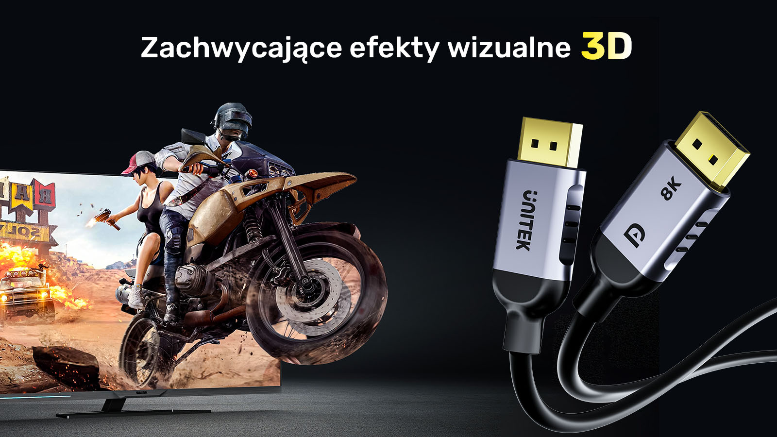 Poznaj maksimum możliwości swojej karty graficznej i monitora – połącz je kablem DisplayPort 1.4 Unitek C1628GY01-5M i zobacz, jak żywe mogą być kolory na Twoim ekranie. Dzięki obsłudze najnowszej wersji standardu DisplayPort przewód może przesyłać obraz w rozdzielczości 7680 × 4320 pikseli (8K) i przy odświeżaniu 60 Hz lub 3840 × 2160 z odświeżaniem 240 Hz. Dzięki możliwościom tego kabla dojrzysz każdy detal w nawet w bardzo dynamicznych scenach. Ostry niczym brzytwa zacznie do złudzenia przypominać rzeczywistość dzięki żywym kolorom zapewnionym przez obsługę HDR i przestrzeń kolorów BT.2020.