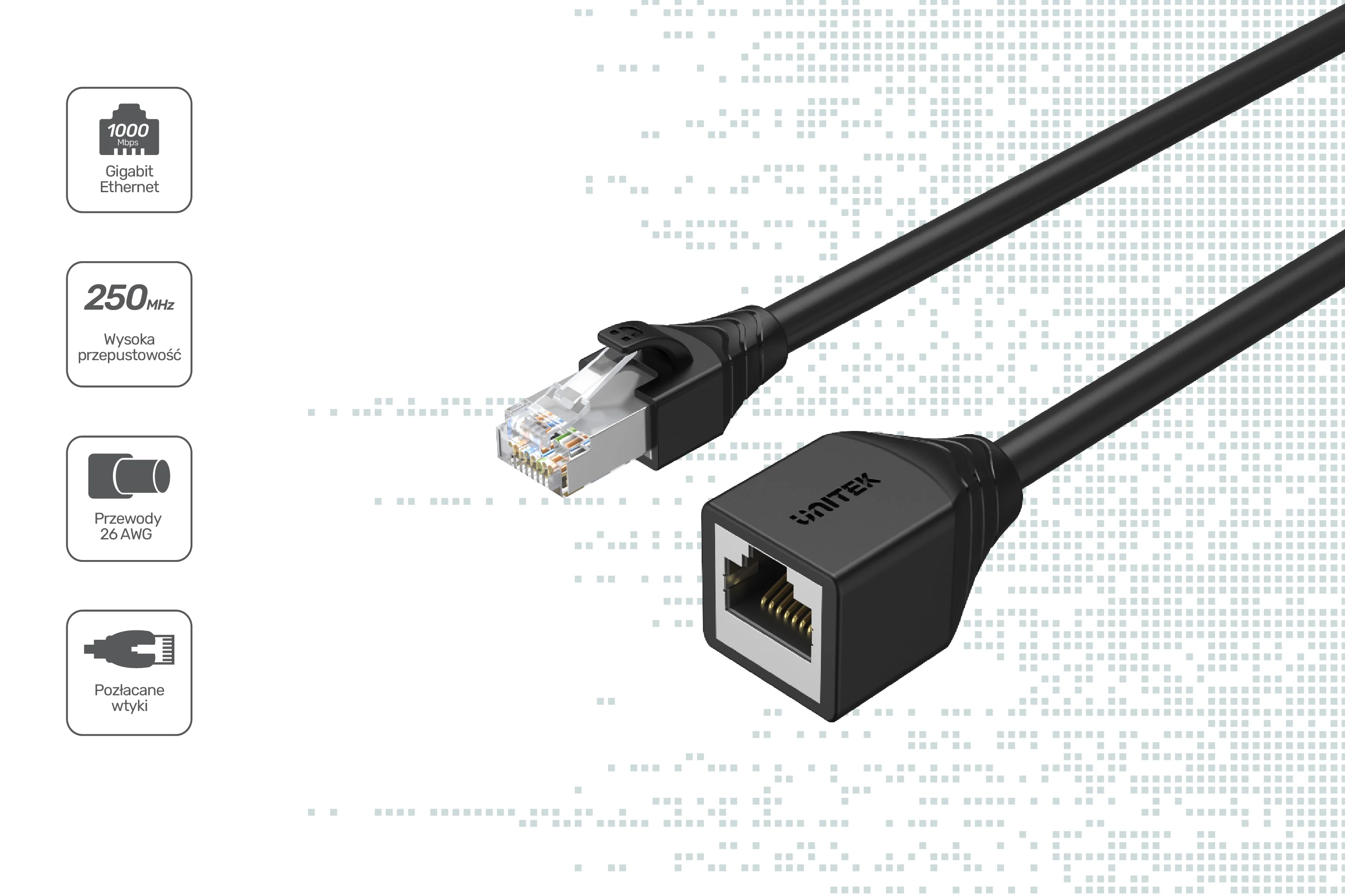 Przedłużacz RJ-45 to praktyczne i bezpieczne rozwiązanie w przypadku posiadania zbyt krótkich przewodów sieciowych w domu lub biurze. Doskonale sprawdzi się przy podłączeniu routera, modemu czy drukarki sieciowej do laptopa, czy PC. Szybkie i stabilne połączenie gwarantuje transfer do 1Gb/s w paśmie 250 MHz. Przedłużacz dostępny w kilku długościach: 0,5 m, 1 m, 2 m, 3 m oraz 5 m – wybierz idealny do twoich potrzeb!