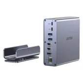 Wymiary: 121,8 mm x 137,9 mm x 49,3 mmZgodność z hostem laptopa: USB 4, Thunderbolt 3/4, USB-C, USB-AUpstream: USB-C 10 Gb/s (z adapterem USB-A)Downstream: USB-A: 10 Gb/s x 2, 5 Gb/s x 1, 480 Mb/sx 2, USB-C: 10 Gb/s x 1, 5 Gb/s x 1Porty: HDMI (4K@60Hz) x 2, Display Port (4K@60Hz) x 1,czytnik kart SD x 1, czytnik kart MicroSD x 1,3,5 mm gniazdo mikrofonowe/audio x 1,RJ45 Gigabit Ethernet (10M/100M/1000M) x 1Port zasilania: PD 100W System operacyjny:Windows 10/11 (32/ ... 64-bitowy)/Mac OS 10.6 lub nowszy/Jądro Linux 3.xDługość kabla: 100 cmMateriał/Kolor: Stop aluminium/Szary kosmiczny