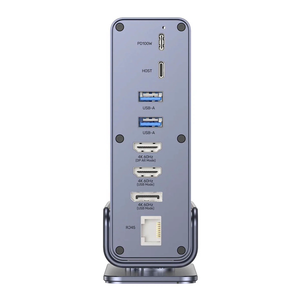 Nowa wersja stacji posiada pot PD o mocy 100W, co pozwala nie tylko ładować laptopa z pełną mocą, ale też zasilać dodatkowe urządzenia jednocześnie. Dzięki temu nie musisz wybierać, czy szybciej naładujesz telefon, czy utrzymasz laptopa pod napięciem. To wygoda, która naprawdę robi różnicę przy intensywnej pracy. Wydajność zasilania pozwala Ci działać dłużej, sprawniej i bez stresu o poziom baterii.