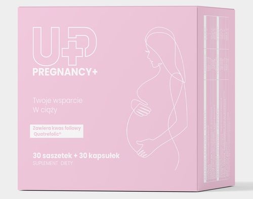 UP PREGNANCY+ to suplement diety stworzony specjalnie dla kobiet w ciąży przez lekarza i dietetyka. Zawiera kluczowe składniki aktywne, takie jak magnez, cholina, inozytol, witaminy B6, D, C, kwas foliowy oraz minerały: miedź, selen, żelazo, cynk i jod. To unikalne połączenie wspiera prawidłowy rozwój płodu i zdrowie przyszłej mamy.